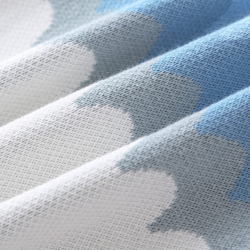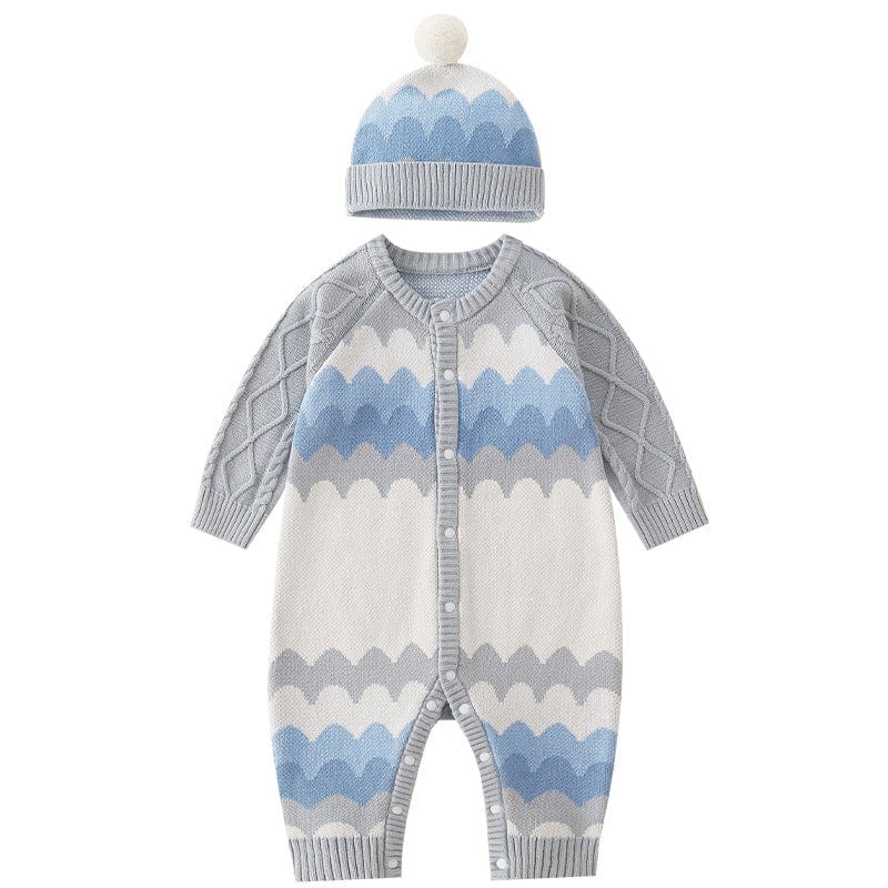 Baby jumpsuit in knitted cotton, patterns of white & blue